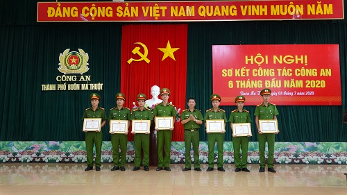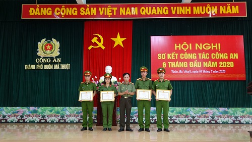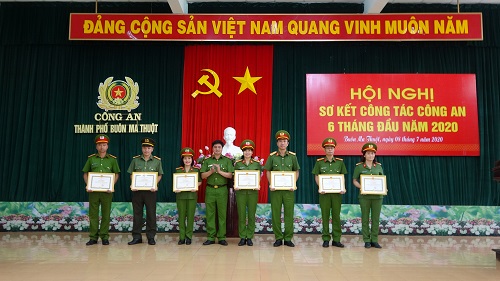 Nhân dịp này, thừa ủy quyền của Giám đốc Công an tỉnh và Chủ tịch Ủy ban Nhân dân thành phố Buôn Ma Thuột, lãnh đạo Công an thành phố đã trao giấy khen cho 04 tập thể và 23 lượt cá nhân có thành tích xuất sắc trong công tác đấu tranh trấn áp tội phạm, đảm bảo an ninh, trật tự trên địa bàn thành phố.
