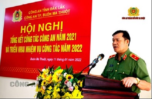 Sáng ngày 11/01/2022, Công an thành phố Buôn Ma Thuột tổ chức Hội nghị tổng kết công tác Công an năm 2021 và triển khai nhiệm vụ công tác năm 2022.