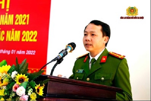 Đ/c Thượng tá Bùi Trọng Tuấn – Bí thư Đảng ủy, Trưởng Công an thành phố phát biểu tại Hội nghị