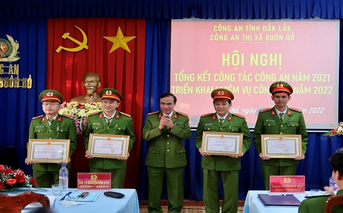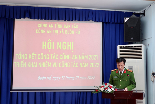 Ngày 12/01/2022, Công an thị xã đã tổ chức Hội nghị tổng kết công tác Công an năm 2021 và triển khai nhiệm vụ công tác năm 2022. Đến dự và chỉ đạo Hội nghị có đồng chí Đại tá Nguyễn Văn Bôn - Phó Bí thư Đảng ủy, Phó Giám đốc Công an tỉnh; đồng chí Võ Văn Dũng - Ủy viên Ban Thường vụ Thị ủy, Phó Chủ tịch Ủy ban nhân dân thị xã Buôn Hồ.