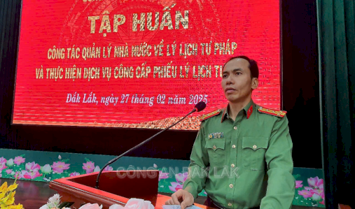 Sáng ngày 27/02/2025, Công an tỉnh Đắk Lắk đã phối hợp tổ chức tập huấn công tác quản lý Nhà nước về lý lịch tư pháp và thực hiện dịch vụ công cấp Phiếu lý lịch tư pháp. Đồng chí Đại tá Trần Quang Hiếu, Phó Giám đốc Công an tỉnh dự, chủ trì và chỉ đạo buổi tập huấn.