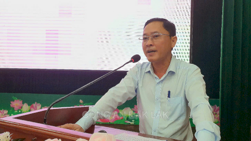 Đồng chí Đại tá Trần Quang Hiếu – Phó Giám đốc Công an tỉnh phát biểu tại buổi tập huấn