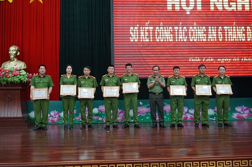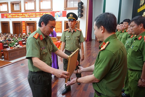 Các đồng chí lãnh đạo Công an tỉnh trao khen thưởng các cá nhân, tập thể có thành tích xuất sắc trong công tác