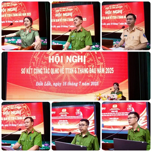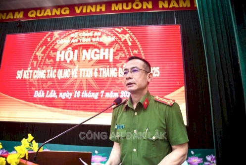 Chiều ngày 16/7/2025, Công an tỉnh Đắk Lắk tổ chức Hội nghị sơ kết công tác QLHC về TTXH 06 tháng đầu năm 2025 nhằm đánh giá kết quả thực hiện các mặt công tác, chỉ ra những tồn tại, hạn chế, đồng thời đề ra phương hướng, nhiệm vụ, giải pháp trong 6 tháng cuối năm. Đồng chí Đại tá Trần Bình Hưng, Phó Giám đốc Công an tỉnh chủ trì Hội nghị; tham dự Hội nghị gồm có: tập thể lãnh đạo đơn vị, chỉ huy các Đội nghiệp vụ Phòng Cảnh sát QLHC về TTXH, đại diện lãnh đạo các đơn vị nghiệp vụ Công an tỉnh và đại diện chỉ huy 102 Công an cấp xã. Hội nghị tổ chức trực tiếp tại Công an tỉnh Đắk Lắk bảo đảm nội dung, quy mô và hiệu quả công tác chỉ đạo, điều hành.