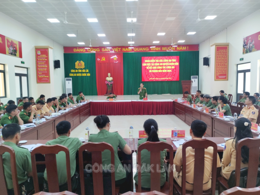 Chỉ huy các đội, Công an các xã lắng nghe và tiếp thu ý kiến chỉ đạo của đồng chí Phó giám đốc Công an tỉnh Trần Bình Hưng