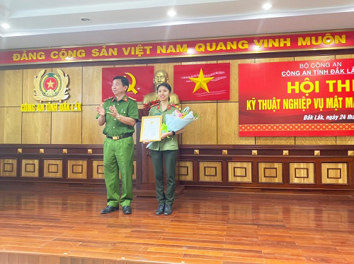 Kết thúc Hội thi Ban tổ chức đã trao giải Nhất cho đồng chí Đại úy Nguyễn Thị Minh Phương - Cán bộ phòng Tham mưu,; trao giải Nhì cho đồng chí Thượng sĩ Nguyễn Thị Tâm Đan - Cán bộ Công an huyện Krông Ana; trao giải Ba cho 02 đồng chí: Thiếu úy Trần Thị Dung – Cán bộ Công an huyện Ea Súp và Thiếu Úy Vũ Quang – Cán bộ phòng Tham mưu; giải Khuyến khích thuộc về đồng chí Thượng úy Nguyễn Văn Sự - Cán bộ phòng Tham mưu và Thượng sĩ Nguyễn Thanh Xuân – Cán bộ Công an huyện Krông Búk.