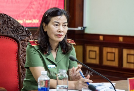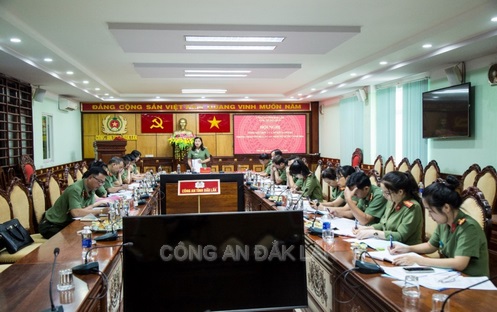 Đồng chí Thiếu tướng Nguyễn Thị Xuân, Phó Giám đốc Công an tỉnh – Chủ trì Hội nghị