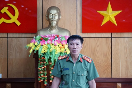 Đồng chí Đại tá Nguyễn Văn Quy - Ủy viên Ban Thường vụ Đảng ủy – Thủ trưởng Cơ quan Ủy ban kiểm tra Đảng ủy Công an tỉnh phát biểu chỉ đạo tại Hội nghị
