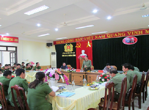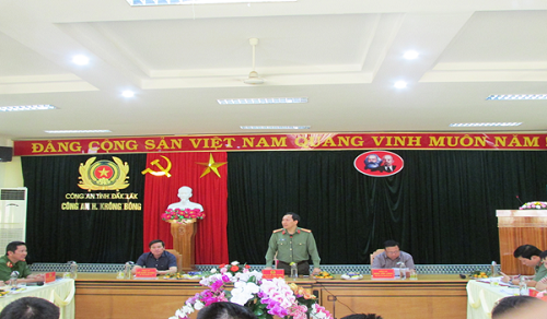 Đ/c Đại tá Lê Văn Tuyến – Giám đốc Công an tỉnh phát biểu chỉ đạo tại buổi làm việc tại Công an huyện Krông Bông