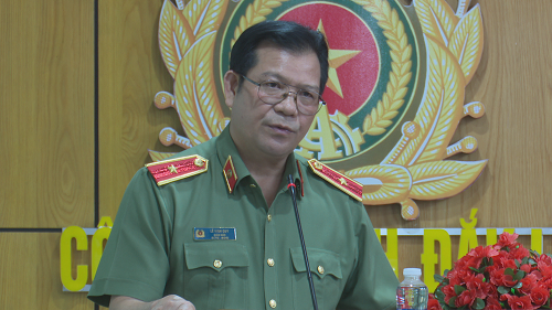 Thiếu tướng Lê Vinh Quy, Ủy viên Ban Thường vụ Tỉnh ủy, Bí thư Đảng ủy, Giám đốc Công an tỉnh phát biểu chỉ đạo tại hội nghị