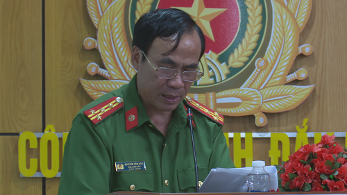 Đại tá Nguyễn Văn Bôn, Phó Bí thư Đảng ủy, Phó Giám đốc Công an tỉnh thông qua các báo cáo trung tâm tại hội nghị