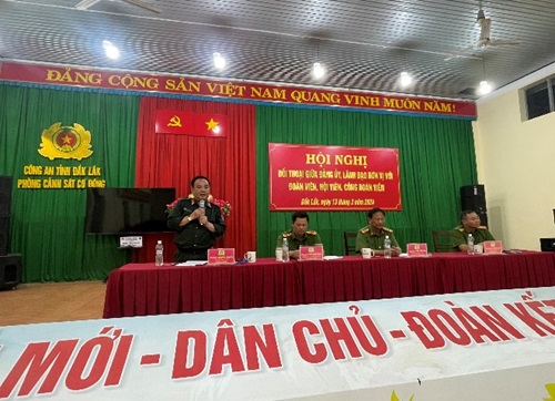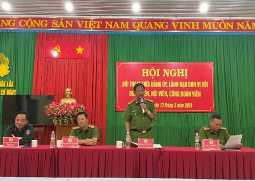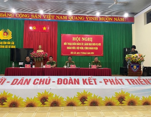 Thực hiện Kế hoạch số 318-KH/ĐUCA ngày 23/02/2024 của Đảng uỷ Công an tỉnh; Nghị quyết năm 2024 của Đảng bộ cơ sở Phòng Cảnh sát cơ động, ngày 13/3/2024, Đảng uỷ, lãnh đạo Phòng PK02 đã tổ chức đối thoại giữa Đảng uỷ, lãnh đạo đơn vị với các tổ chức đoàn thể trực thuộc. Đồng chí Thượng tá Cao Tiến Phu - Bí thư Đảng uỷ, Trưởng phòng - Chủ trì hội nghị. Tham dự hội nghị có các đồng chí trong Ban Thường vụ, Ban Chấp hành đảng bộ cơ sở, đại diện Cấp uỷ, chỉ huy các Đội, Tiểu đoàn Cảnh sát cơ động, Đại đội Cảnh sát bảo vệ mục tiêu, đại diện BCH các đoàn thể và toàn thể đoàn viên Đoàn thanh niên, Công đoàn viên Công đoàn cơ sở, hội viên Hội phụ nữ cơ sở.