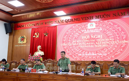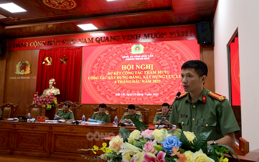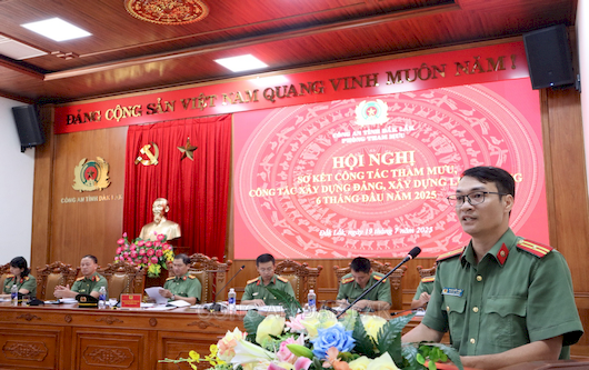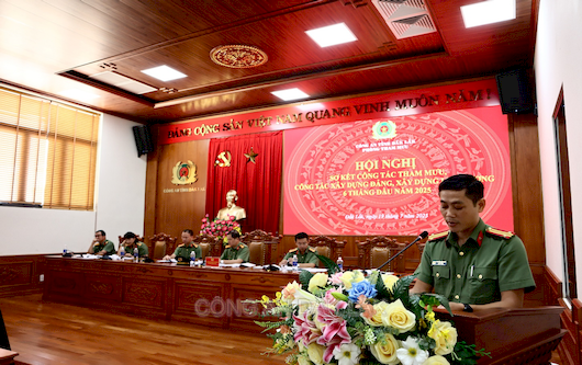 Hội nghị được nghe đồng chí Thượng tá Lê Cao Cường - Phó Trưởng phòng, Phòng Tham mưu trình bày Báo cáo tóm tắt kết quả công tác tham mưu, công tác xây dựng Đảng, xây dựng lực lượng; kết quả phong trào thi đua “Vì an ninh Tổ quốc” 06 tháng đầu năm 2025; đồng chí Thượng tá Trần Đăng Khoa – Phó Trưởng phòng, Phòng Tham mưu điều hành nội dung tham luận tại Hội nghị. Quán triệt sự chỉ đạo của Đảng ủy, lãnh đạo Công an tỉnh cùng với sự đoàn kết, nỗ lực phấn đấu, quyết tâm cao của Đảng ủy và toàn thể cán bộ, đảng viên, Đảng bộ, đơn vị Phòng Tham mưu đã hoàn thành tốt các Nghị quyết, Chương trình, Kế hoạch công tác 06 tháng đầu năm 2025. Chủ động tham mưu Đảng ủy, lãnh đạo Công an tỉnh ban hành các văn bản chỉ đạo thực hiện hiệu quả nhiều chủ trương, biện pháp công tác có ý nghĩa cơ bản, chiến lược, giải quyết, xử lý kịp thời, có hiệu quả các vấn đề phức tạp nổi lên về ANTT. Công tác tham mưu trên các lĩnh vực đạt nhiều kết quả quan trọng, góp phần tích cực giữ vững ổn định ANCT, bảo đảm TTATXH, xây dựng lực lượng Công an tỉnh ngày càng trong sạch, vững mạnh, đáp ứng yêu cầu, nhiệm vụ trong tình hình mới. Công tác xây dựng Đảng, xây dựng lực lượng và lãnh đạo đoàn thể quần chúng luôn được Đảng ủy quan tâm, chú trọng và có những chuyển biến tích cực, nhất là về chính trị tư tưởng, góp phần nâng cao nhận thức, hành động và tạo động lực mạnh mẽ để đảng viên, cán bộ, chiến sĩ hoàn thành tốt nhiệm vụ công tác chuyên môn.