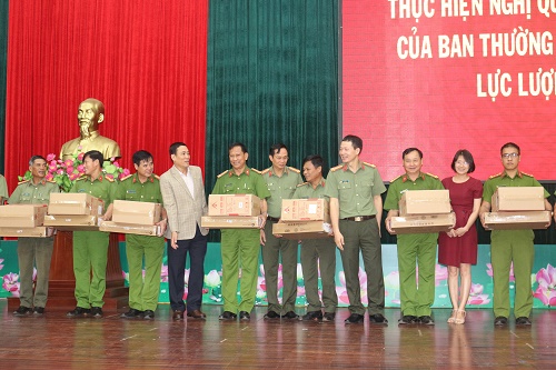 Lãnh đạo tỉnh và lãnh đạo Công an tỉnh trao tặng máy vi tính cho lực lượng Công an xã trên địa bàn tỉnh