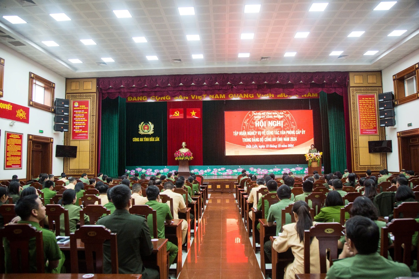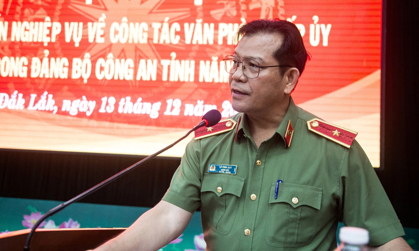 Sáng ngày 13/12/2024, Đảng ủy Công an tỉnh tổ chức Hội nghị tập huấn nghiệp vụ về công tác văn phòng cấp ủy trong Đảng bộ Công an tỉnh năm 2024 cho các đồng chí là lãnh đạo, chỉ huy, cán bộ làm công tác văn phòng cấp ủy trong Đảng bộ Công an tỉnh, Đảng bộ Công an huyện, thị xã, thành phố. Thiếu tướng Lê Vinh Quy, Ủy viên Ban Thường vụ Tỉnh ủy, Bí thư Đảng ủy, Giám đốc Công an tỉnh dự và phát biểu chỉ đạo tại Hội nghị.