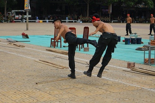 Trong buổi sáng, các khối tham gia đã thực hiện các nội dung duyệt đội ngũ, biểu dương lực lượng và thực hiện phần diễu hành giả định cho các đội thi đến từ Công an các tỉnh, thành phố tham gia Hội thi. Đặc biệt, sau một thời gian dài tập luyện, hôm nay, đơn vị K02, Bộ công an đã trình diễn các tiết mục biểu diễn võ thuật và khí công rất thuần thục và điêu luyện.