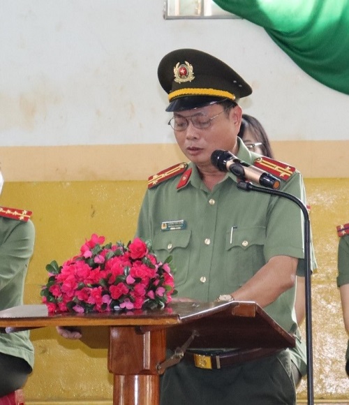 Đ/c Thượng tá Lương Văn Hùng – Trưởng phòng Kỹ thuật nghiệp vụ, khối trưởng khối thi đua số III phát biểu khai mạc Giải bóng đá truyền thống lực lượng An ninh