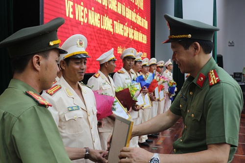 Đại tá Nguyễn Minh Kính – Phó Giám đốc Công an tỉnh trao quyết định thăng cấp hàm cấp úy cho CBCS
