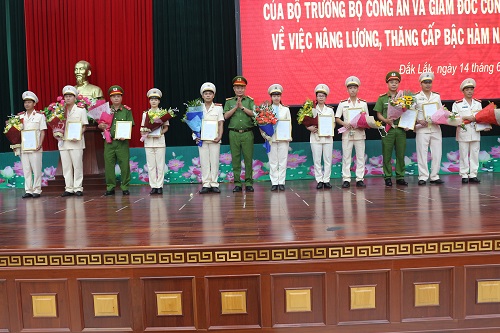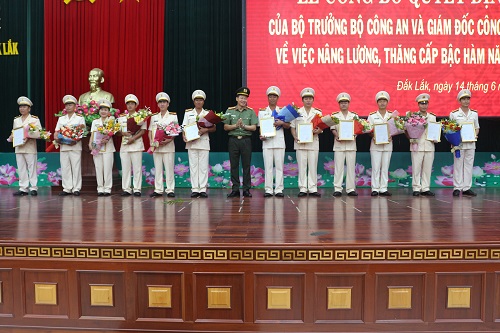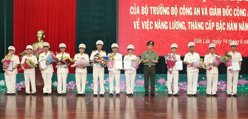 Sáng nay 14/6/2019, Công an tỉnh Đắk Lắk long trọng tổ chức Lễ công bố quyết định thăng cấp, nâng lương cho cán bộ, chiến sĩ năm 2019. Đồng chí Đại tá Vũ Hồng Văn, Bí thư Đảng ủy, Giám đốc Công an tỉnh chủ trì buổi Lễ; tham dự Lễ có các đồng chí trong Ban Giám đốc, đại diện lãnh đạo các đơn vị thuộc Công an tỉnh, Công an huyện, thị xã, thành phố cùng hơn 300 cán bộ, chiến sĩ đại diện cho số cán bộ, chiến sĩ được phong cấp nâng lương năm 2019.