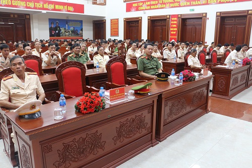 Tại buổi lễ, sau khi công bố quyết định, gắn quân hàm mới cho cán bộ, chiến sĩ, thay mặt Đảng ủy, lãnh đạo Công an tỉnh, đồng chí Đại tá Nguyễn Minh Kính, Phó Giám đốc Công an tỉnh đã ghi nhận, biểu dương những thành tích, đóng góp công sức của cán bộ, chiến sĩ toàn lực lượng Công an tỉnh nói chung, cán bộ, chiến sĩ được thăng cấp nâng lương đợt này nói riêng trên các lĩnh vực công tác thời gian qua. Đồng chí đã chúc mừng và động viên, nhắc nhở mỗi cán bộ, chiến sĩ được thăng cấp bậc hàm, nâng lương trong đợt này tiếp tục phấn đấu học tập tu dưỡng, rèn luyện đạo đức theo Sáu điều Bác Hồ dạy CAND, nâng cao lý luận chính trị, trình độ chuyên môn nghiệp vụ, pháp luật, ứng dụng khoa học kỹ thuật để nâng tầm hiệu quả công việc, xứng đáng là lực lượng tin cậy của Đảng, Nhà nước và Nhân dân, góp phần thực hiện tốt nhiệm vụ bảo vệ an ninh quốc gia, bảo đảm trật tự, an toàn xã hội, phục vụ đắc lực cho sự nghiệp xây dựng phát triển kinh tế, văn hóa, xã hội trên địa bàn tỉnh./.