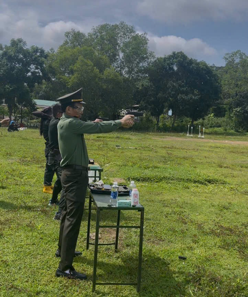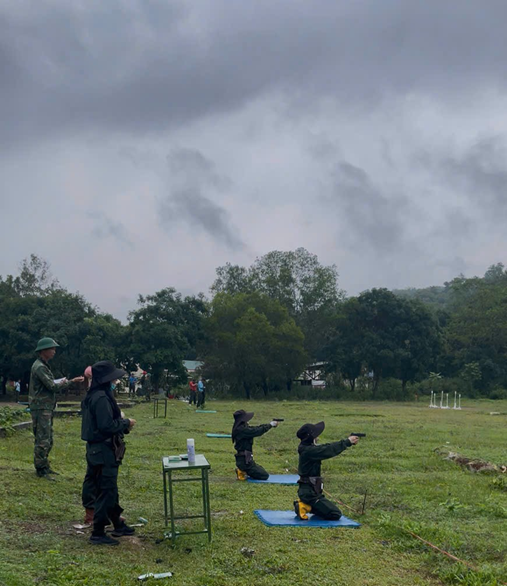 Đ/c Đại tá Trần Quang Hiếu – Phó Giám đốc Công an tỉnh tham gia tập luyện nội dung thi bắn súng cùng đội tuyển