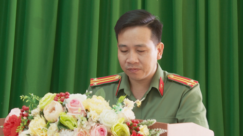 Đồng chí Trung tá Nguyễn Huy Nam, Trưởng phòng An ninh mạng và Phòng, chống tội phạm công nghệ cao phát biểu tại Hội nghị