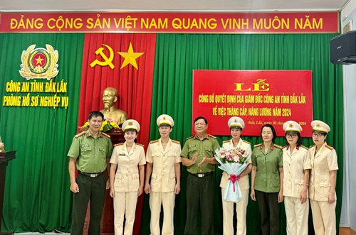 Theo niên hạn năm 2024, Phòng Hồ sơ nghiệp vụ có 05 đồng chí đủ điều kiện được thăng cấp bậc hàm, nâng lương. Trong đó, có 02 đồng chí được nâng bậc lương cấp bậc hàm Trung tá, 02 đồng chí thăng cấp bậc hàm từ Thiếu tá lên Trung tá, 01 đồng chí thăng cấp bậc hàm từ Thượng úy lên Đại úy.