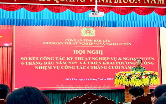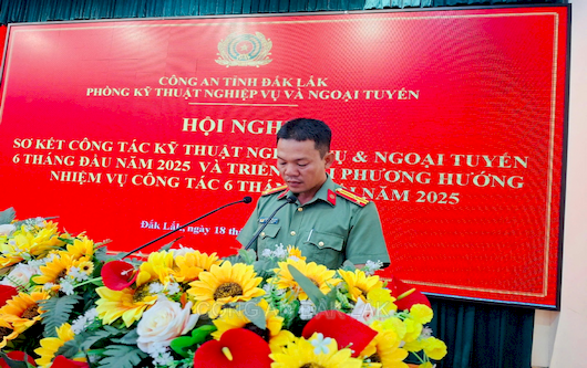 Chiều ngày 18/7/2025, Phòng Kỹ thuật nghiệp vụ và Ngoại tuyến Công an tỉnh Đăk Lắk tồ chức Hội nghị sơ kết công tác Kỹ thuật nghiệp vụ và Ngoại tuyến 06 tháng đầu năm 2025 và triển khai nhiệm vụ công tác trọng tâm 06 tháng cuối năm 2025. Đồng chí Thượng tá Nguyễn Danh Bằng, Bí thư Đảng ủy- Trưởng phòng chủ trì Hội nghị; thành phần tham dư có các đồng chí lãnh đạo, chỉ huy các đội nghiệp vụ cùng toàn thể CBCS phòng Kỹ thuật nghiệp vụ và Ngoại tuyến.