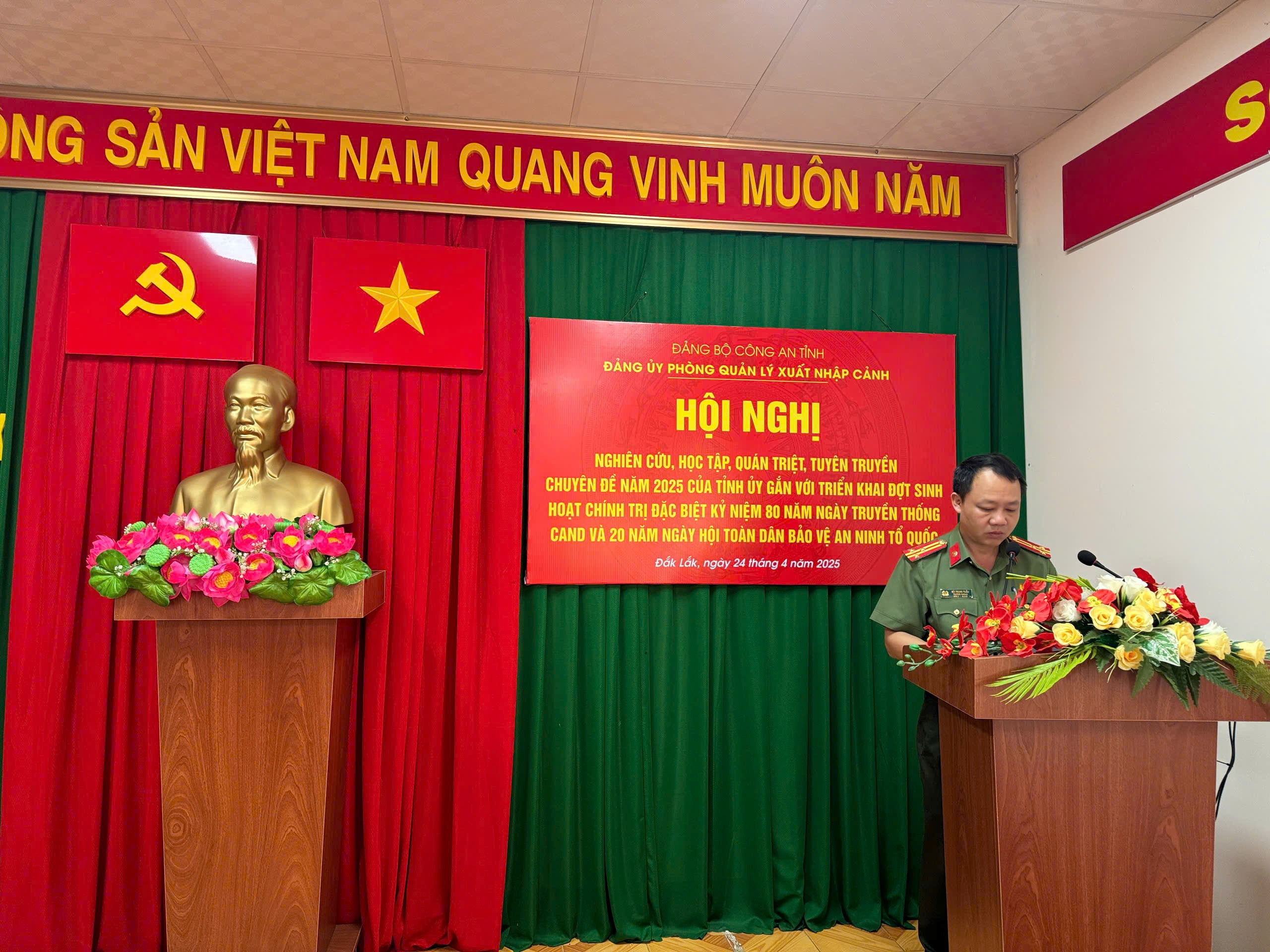 Phát biểu kết luận Hội nghị, đồng chí Chủ trì ghi nhận, đánh giá cao những cố gắng nỗ lực của toàn thể cán bộ, đảng viên trong thời gian qua. Đồng thời, nhấn mạnh thời gian tới, sẽ diễn ra nhiều sự kiện chính trị quan trọng của đất nước, do vậy, yêu cầu cấp ủy các chi bộ, cán bộ, đảng viên tiếp tục tu dưỡng, rèn luyện bản lĩnh chính trị, gương mẫu, tự soi, tự sửa, tự phê bình và phê bình, tự nhận diện, đấu tranh với biểu hiện suy thoái về tư tưởng chính trị, đạo đức, lối sống; tiếp tục cụ thể hóa, triển khai thực hiện nhiệm vụ đề ra, chủ động tích cực tham gia các phong trào thi đua yêu nước; phát huy hiệu quả tinh thần đoàn kết, xây dựng lực lượng Quản lý xuất nhập cảnh thật sự trong sạch, vững mạnh, chính quy, tinh nhuệ, hiện đại đáp ứng yêu cầu, nhiệm vụ trong kỷ nguyên phát triển mới, “kỷ nguyên vươn mình dân tộc”, hoàn thành xuất sắc nhiệm vụ được giao.