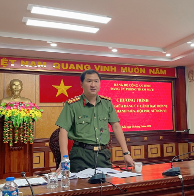 Thực hiện Kế hoạch của Đảng ủy Công an tỉnh về tổ chức đối thoại giữa Đảng ủy, lãnh đạo Công an tỉnh với đoàn viên, hội viên, công đoàn viên năm 2024. Nhằm tạo diễn đàn dân chủ, cởi mở để đoàn viên, hội viên bày tỏ, đề xuất những tâm tư, tình cảm, nguyện vọng của mình trong học tập, rèn luyện, công tác và chiến đấu; qua đó hiểu được những chủ trương, chính sách của Đảng, của Ngành đối với công tác thanh niên, phụ nữ. Vừa qua, Đảng bộ Phòng Tham mưu đã tổ chức Chương trình đối thoại giữa cấp ủy, lãnh đạo đơn vị với Đoàn Thanh niên và Hội Phụ nữ.