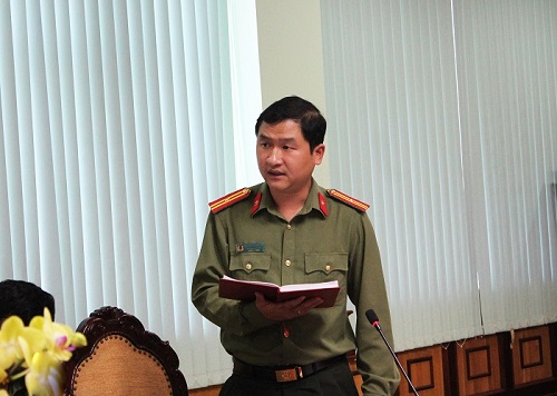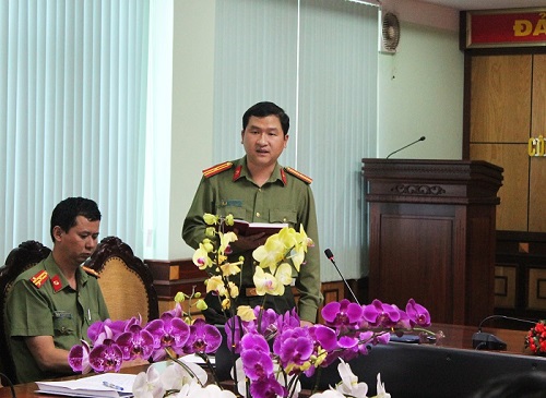 Đồng chí Thiếu tá Nguyễn Thanh Hải - Phó Bí thư Đảng ủy, Phó Trưởng phòng Tham mưu phát biểu chỉ đạo