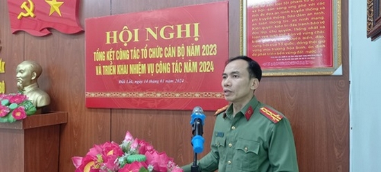 Phát biểu chỉ đạo tại Hội nghị, đồng chí Đại tá Trần Quang Hiếu – Uỷ viên Ban Thường vụ Đảng ủy, Phó Giám đốc Công an tỉnh biểu dương, ghi nhận và đánh giá cao những nỗ lực, thành tích đạt được của Phòng Tổ chức cán bộ trong năm 2023. Đồng thời, yêu cầu đơn vị tiếp tục giữ vững đoàn kết thống nhất, làm tốt công tác tham mưu Ban Thường vụ Đảng ủy, lãnh đạo Công an tỉnh trong công tác tổ chức cán bộ của toàn Công an tỉnh, chú trọng tham mưu công tác đào tạo, bồi dưỡng nâng cao trình độ mọi mặt cho đội ngũ cán bộ Công an tỉnh, nhất là lực lượng cơ sở; tăng cường công tác bảo vệ chính trị nội bộ trong Công an nhân dân; chú trọng công tác xây dựng đội ngũ Công an các cấp, tiếp tục tăng cường lực lượng cơ sở và đội ngũ Điều tra viên; thực hiện tốt chế độ tiền lương, chế độ bảo hiểm xã hội, bảo hiểm y tế, các chế độ chính sách cho CBCS, đặc biệt đối với CBCS công tác ở môi trường nguy hiểm, nặng nhọc, độc hại, vùng biên giới, vùng khó khăn, quan tâm chế độ ưu đãi người có công với cách mạng và hậu phương CAND... góp phần xây dựng lực lượng Công an tỉnh Đắk Lắk thật sự trong sạch, vững mạnh, chính quy, tinh nhuệ, hiện đại, đáp ứng yêu cầu, nhiệm vụ trong tình hình mới.