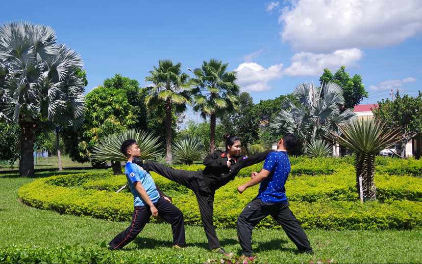 Thiếu tá Phạm Thị Tiết Lan thi đấu nội dung quyền đồng đội nữ và đạt Huy chương Vàng