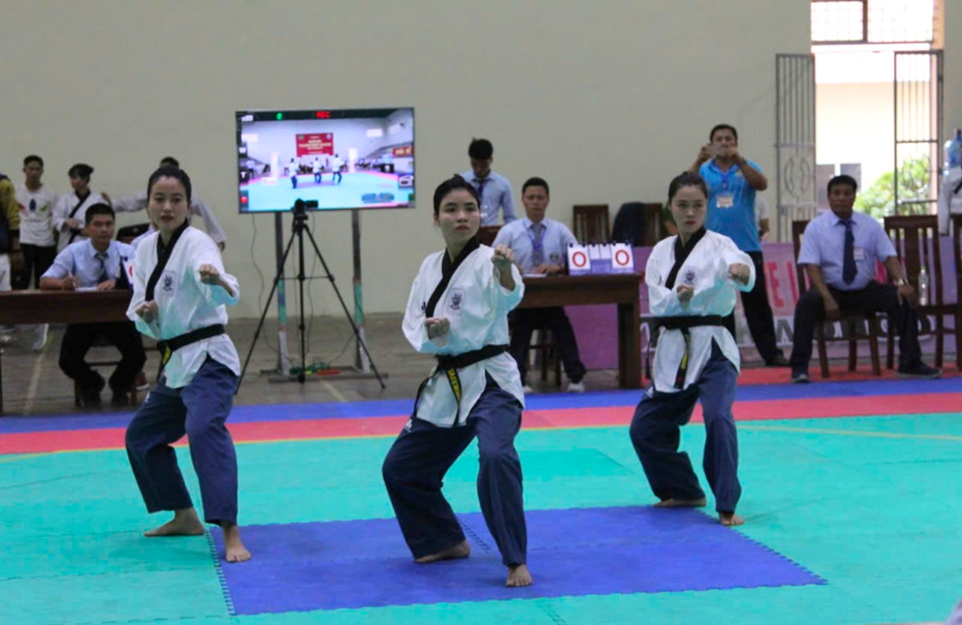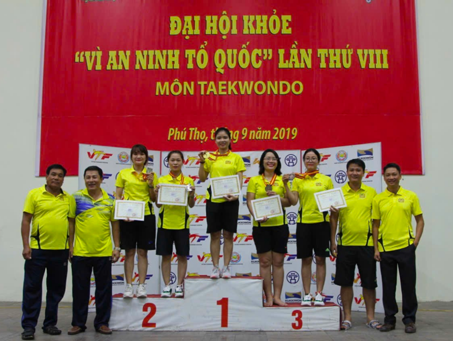 Thiếu tá Phạm Thị Tiết Lan giành Huy chương Vàng môn Taekwondo tại Đại hội khỏe “Vì an ninh Tổ quốc”.