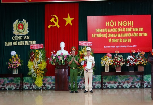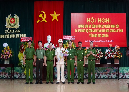 Chiều ngày 29/11/2019, tại Hội trường Công an thành phố Buôn Ma Thuột, Công an tỉnh Đắk Lắk tổ chức Hội nghị thông báo và công bố các quyết định của Bộ trưởng Bộ Công an và Giám đốc Công an tỉnh về công tác cán bộ. Tại Hội nghị, đồng chí Đại tá Nguyễn Văn Hội – Phó Giám đốc Công an tỉnh thông báo quyết định của Bộ Trưởng Bộ Công an về việc điều động, bổ nhiệm đồng chí Trung tá Nguyễn Trần Tuấn - Phó Trưởng Công an thành phố giữ chức vụ Trưởng Công an huyện Krông Búk và Công bố quyết định của Giám đốc Công an tỉnh về việc điều động cán bộ đối với đồng chí Trung tá Lê Văn Mạnh - Phó Trưởng phòng An ninh đối nội đến nhận công tác, giữ chức vụ Phó Trưởng Công an thành phố Buôn Ma Thuột.