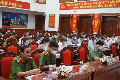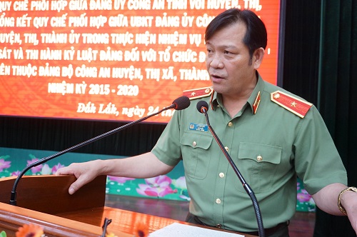 Đồng chí Thiếu tướng Lê Vinh Quy – Giám đốc Công an tỉnh phát biểu tại hội nghị