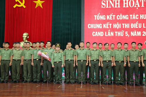 Cũng tại buổi sinh hoạt, Ban Giám đốc Công an tỉnh, cùng lãnh đạo các đơn vị đã tặng hoa và chúc mừng cán bộ, chiến sĩ thuộc các khối tham gia Hội thi./.