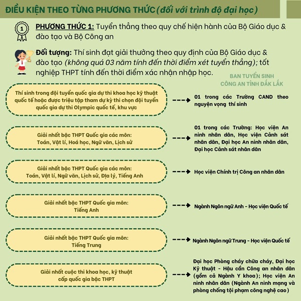 - Thí sinh là con Công an có bằng tốt nghiệp đại học văn bằng 1 loại xuất sắc.