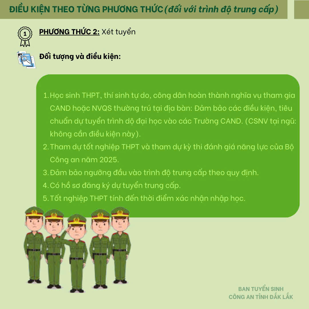 * Mọi chi tiết khác thí sinh chưa rõ, đề nghị liên hệ trực tiếp cán bộ tuyển sinh tại các đơn vị trực thuộc, Công an cấp xã hoặc liên hệ Đội Tổ chức, biên chế và đào tạo, Phòng Tổ chức cán bộ, Công an tỉnh Đắk Lắk (1Đồng chí Trung tá Trần Văn Cường - Đội trưởng, số điện thoại: 0982.745.577; 2Đồng chí Thiếu tá Nguyễn Đình Phúc - Phó Đội trưởng, số điện thoại: 090.522.6322; 3Đồng chí Trung tá Đặng Thanh Tuấn - cán bộ phụ trách công tác tuyển sinh Văn bằng 2, số điện thoại: 0913.333.738)./.